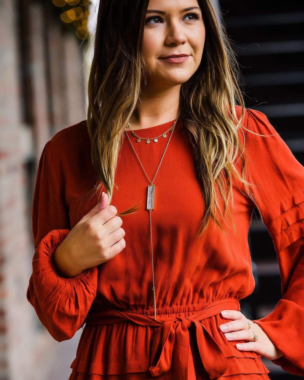 Our 'Thankful For You Dress' is the perfect dress this holiday season. Featuring pleats, puff long sleeves, and a waistline belt in a stunning color perfect for Fall!