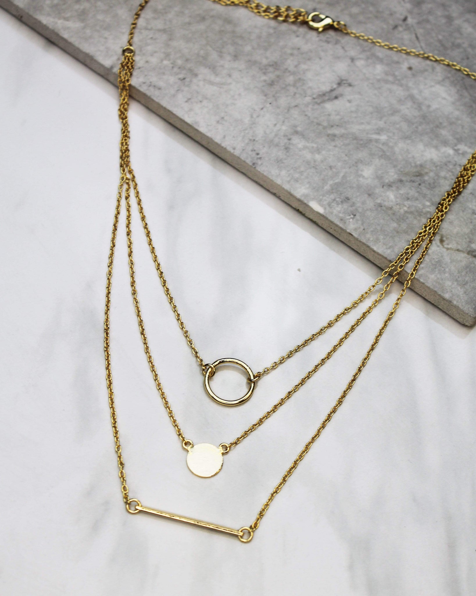 We love a good layering necklace. Grab this gorgeous multi strand necklace gold chain and pendants with a lobster closure. Measuring 9.75 inches.