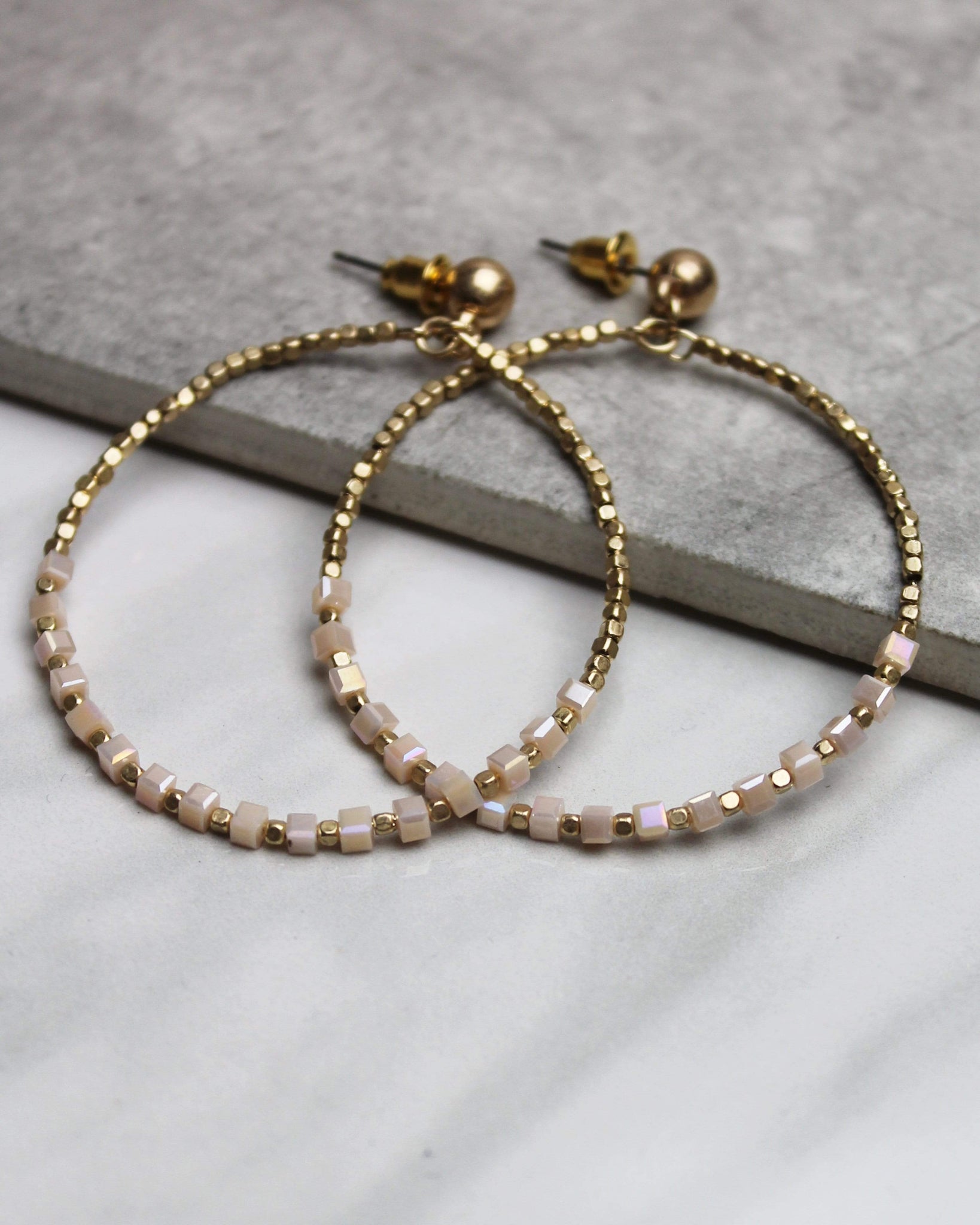 Talk about the perfect earrings, classy, chic and goes with everything! Featuring the cutest gold beads mixed with a light pink crystal.